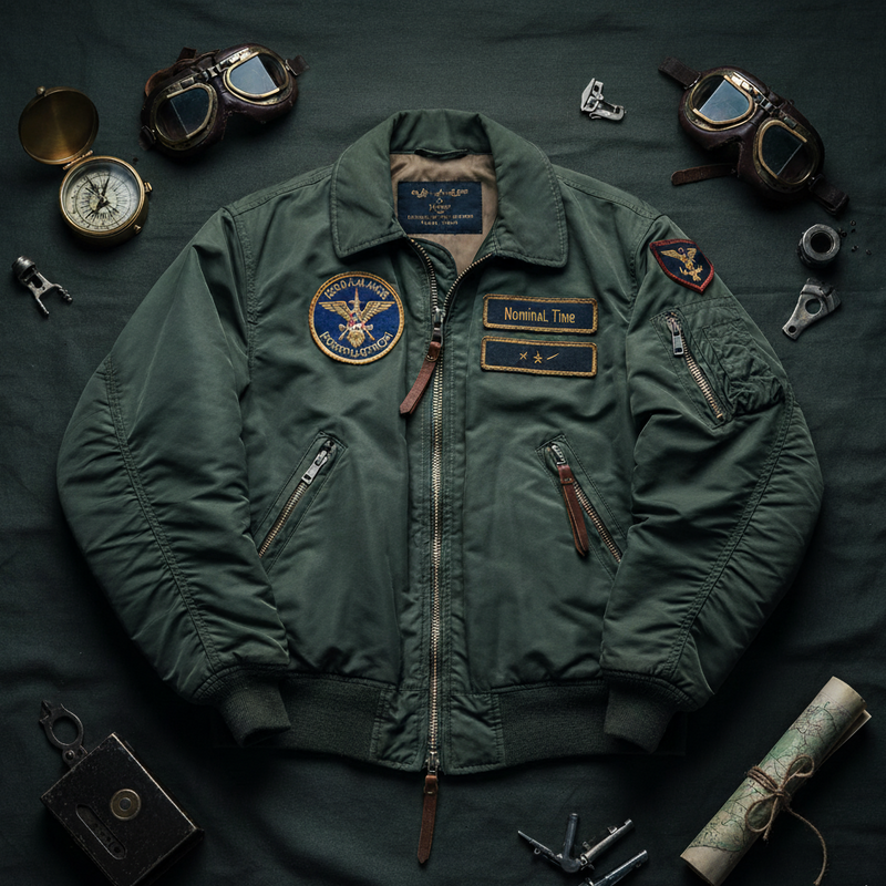 Crafted with aviation-grade nylon, reinforced stitching, and authentic embroidered patches — inspired by WWII pilot jackets.